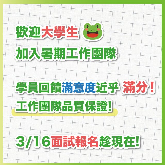看到這裡的您是否想幫助高中生找到方向呢?或是想提升第二專長呢?現在是一個展現你的熱情、培養內在與外在能力的大好時機!